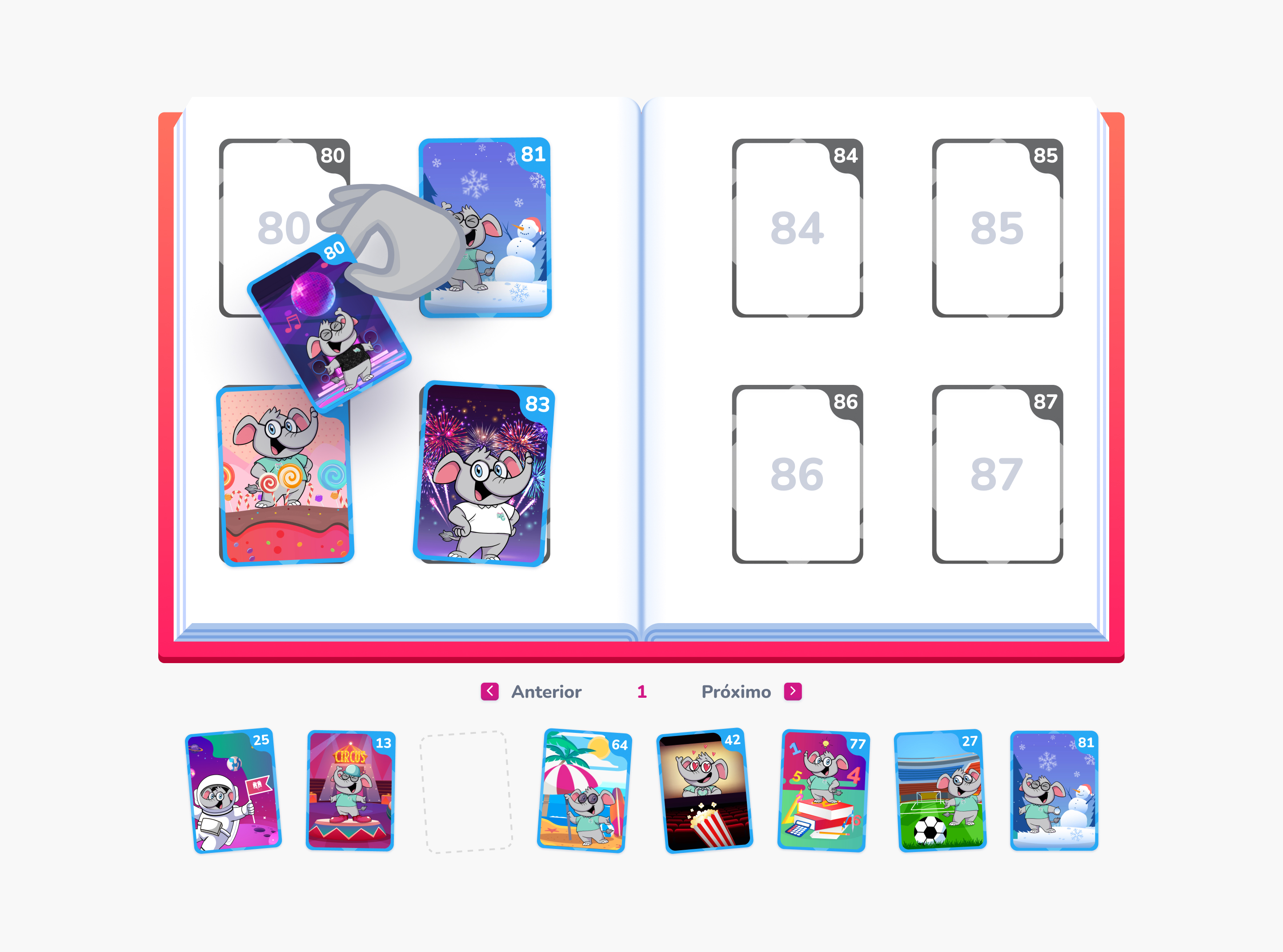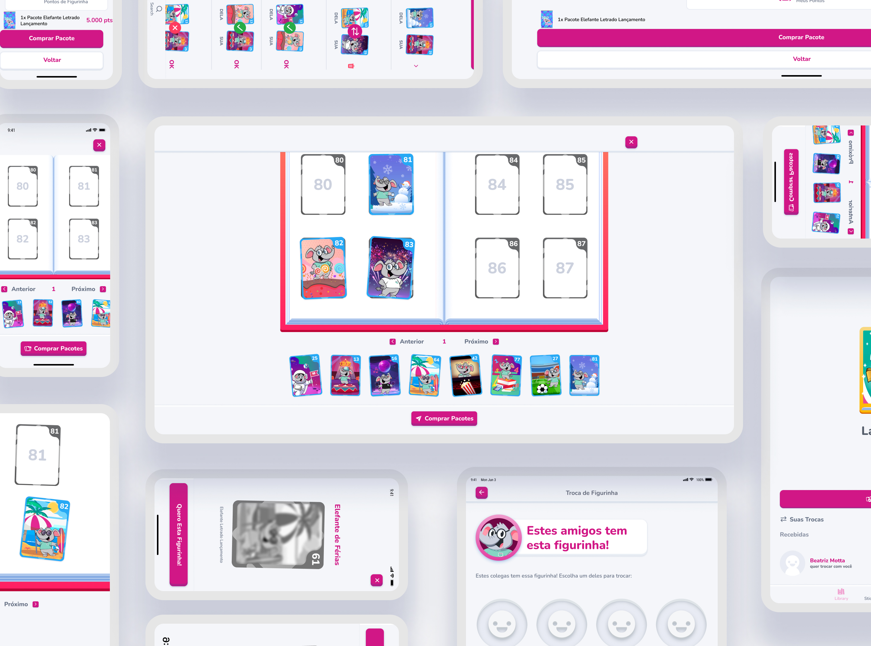 The feature had to closely replicate it’s real world equivalent, from start to finish. Buying packs and opening them with a swipe of the finger, seeing all your sticker collection, placing them by dragging one by one and most importantly, trading them with friends. It paid off remarkably, since those similarities were very well received by the kids in our testing sessions. Bringing this familiarity to the UX made them instinctively know how to open packs and trade stickers.